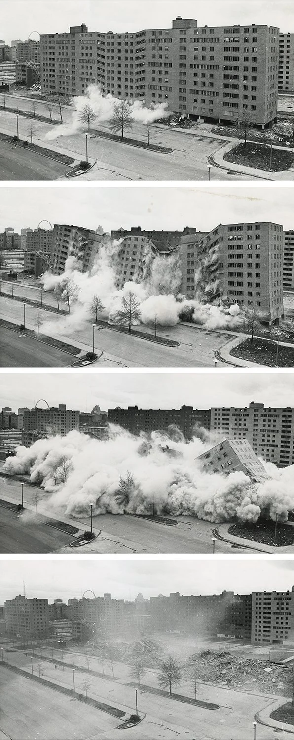 Again, no facts, just opinion. It’s interesting how little history is included. Pruitt-Igoe was built in St. Lous in the early 50s and all 33 buildings were demolished by 1976. Pruitt-Igoe was studied in architectural history as an object lesson in failed urban renewal.